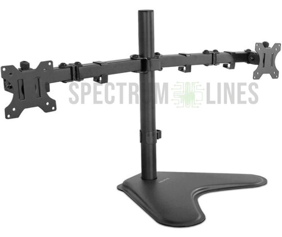The Mount-It! Dual Monitor Desk Stand supports two monitors from 19″ to 32″, featuring full motion adjustment, a heavy-duty freestanding base, and integrated cable management. It’s ideal for ergonomic workspaces where clamp-free mounting is preferred.