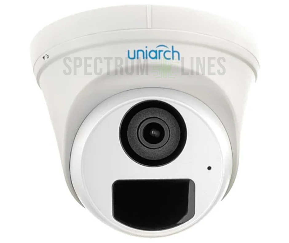 The Uniarch 4MP NDAA-Compliant Turret IP Camera (Model: IPC-T124-APF28) delivers sharp 1440p HD video, Smart IR night vision up to 30 meters, and a built-in microphone for complete audio and video surveillance. With a wide 2.8mm lens, PoE support, and IP67 weatherproof housing, this cost-effective yet powerful camera is perfect for homes, offices, or government-secure installations.